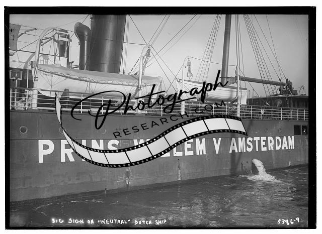 Big sign on NEUTRAL Dutch ship 'PRINS WILLEM V AMSTERDAM',ship,Bain News