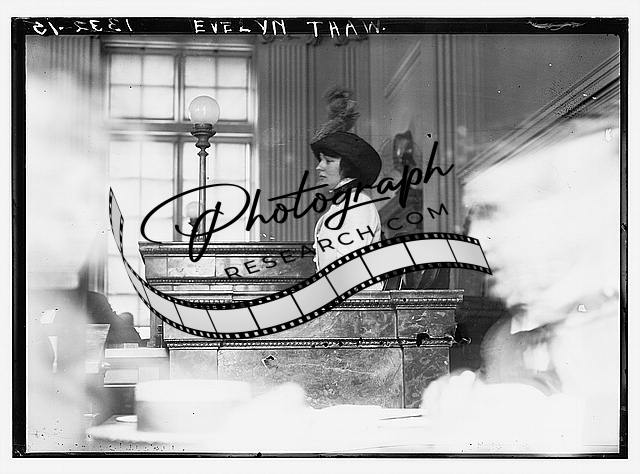 Evelyn Nesbit Thaw,1884-1967,seated in court,witness stand,actress,model