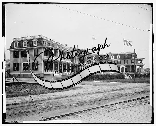 Shoreham,hotels,railroad tracks,porches,buildings,Cape May,New Jersey,NJ,1900