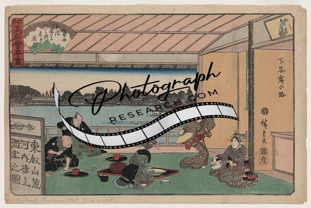 Photo of Ukiyo-e,Japan,Teahouse,Geishas,Hiroshige Ando,Drinking Party,Kawachiro