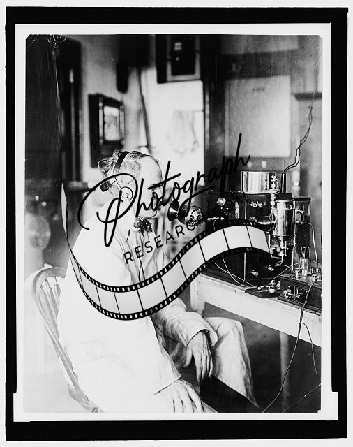 Lee De Forest,1873-1961,watching/listeneing to talking movie of himself,NJ