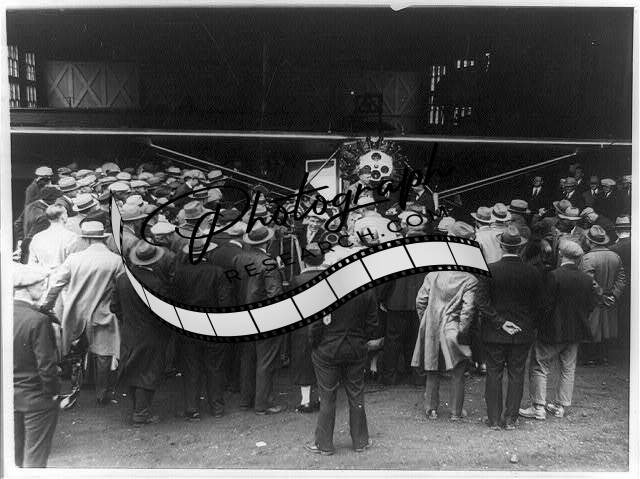 Crowds,Charles Lindbergh,Richard Evelyn Byrd,Clarence D Chamberlain,hangar,c1927