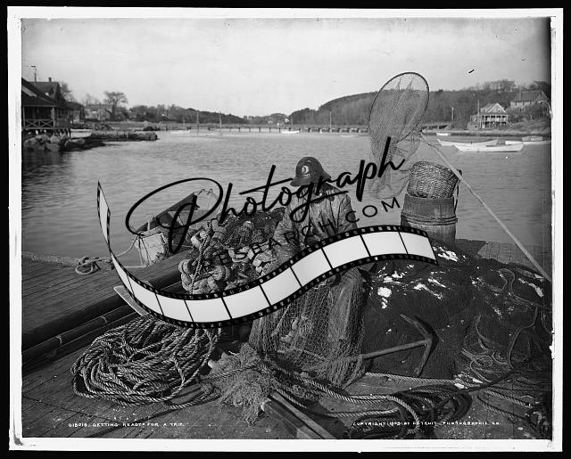 Getting ready for trip,fishermen,fishing industry,nets,docks,piers,wharves,c1905