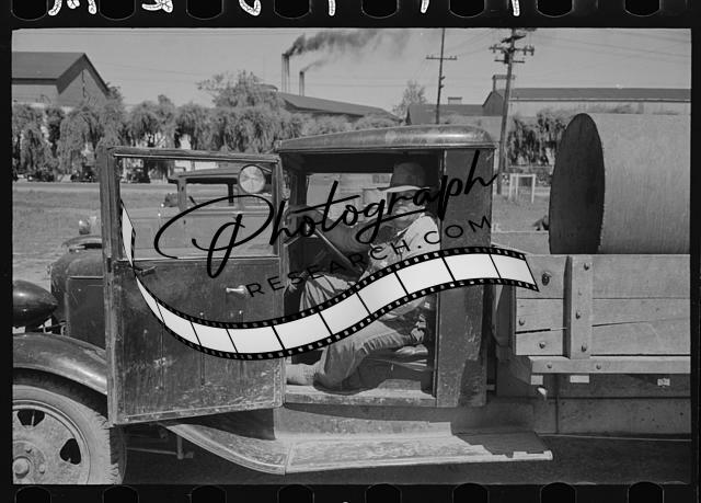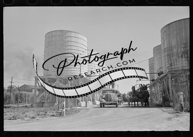 Title: Farmers leaving liquid feed loading station, Owensboro, Kentucky