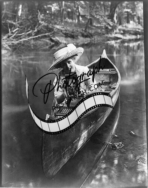 Woman in canoe pointing Camera,c1909,Photography,Photographer