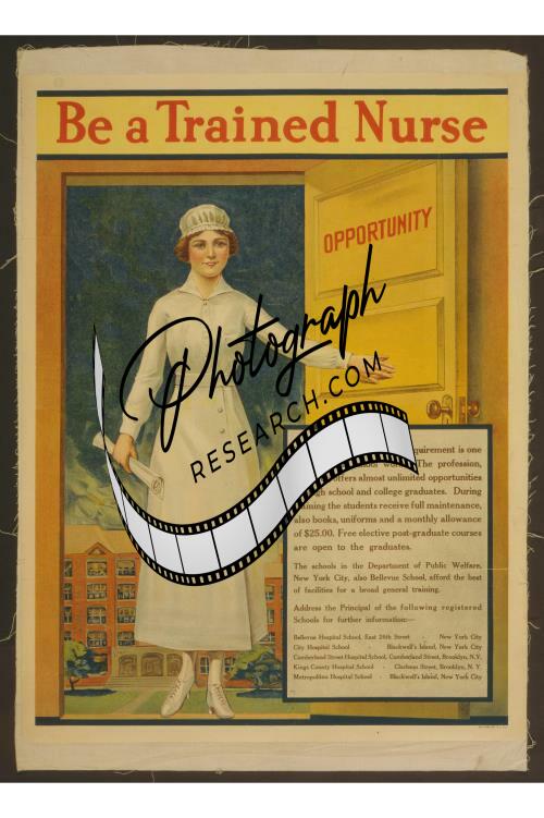 Be a trained nurse,WWI,c1917,Photo of Poster,woman,white uniform,Opportunity