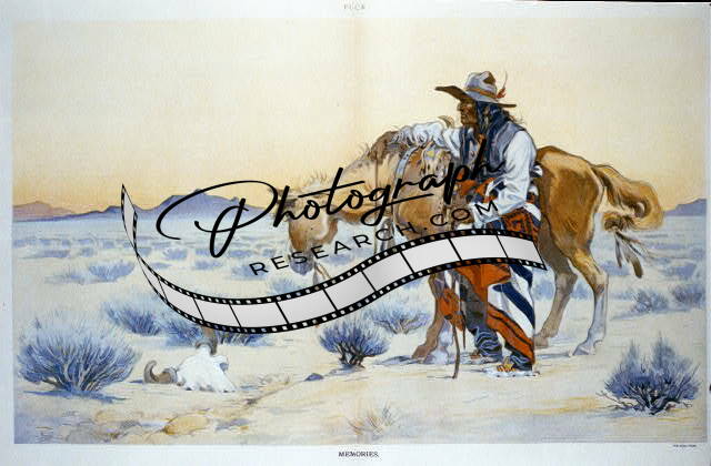 Memories,Old Indian,beside horse,looking over the desert,c1913,Puck,photograph
