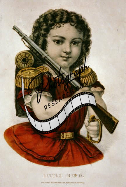 Little hero,Currier & Ives,1856-1907,little girl holding rifle,child,red dress,2