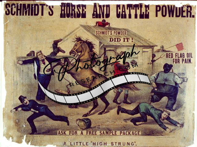A little 'high strung',Schmidt's Horse & Cattle Powder,Currier & Ives,c1879