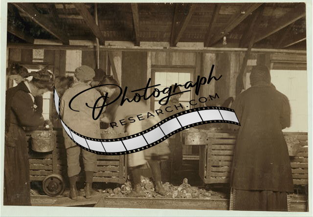 Title: Group of oyster-shuckers working in Alabama Canning Co. Location: Bayou La Batre, Alabama.