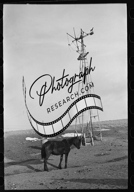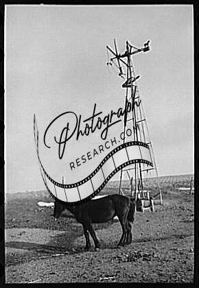 Blind horse,broken windmill on Glen Cook's farm near Smithland,Iowa,IA,FSA,1