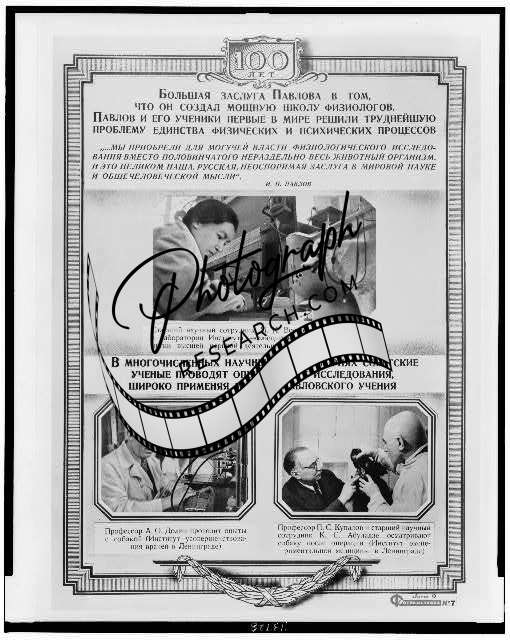 3 images of Russian Scientists in laboratories,quotation from Ivan P Pavlov,1947