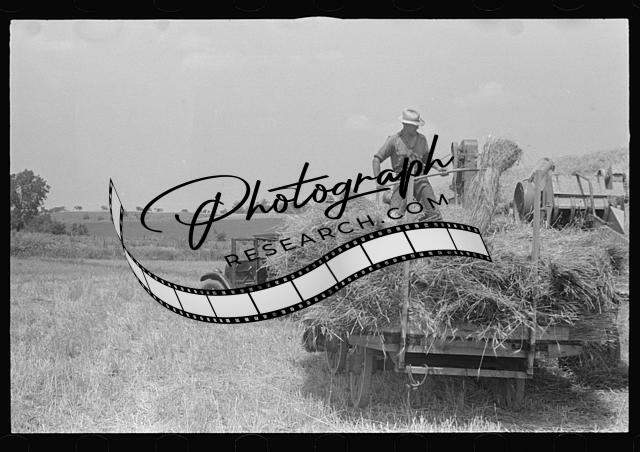 Hauling wheat to thresher,central Ohio,OH,Summer 1938,Farm Security Admin,FSA 1