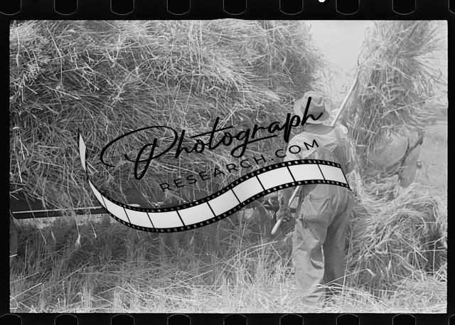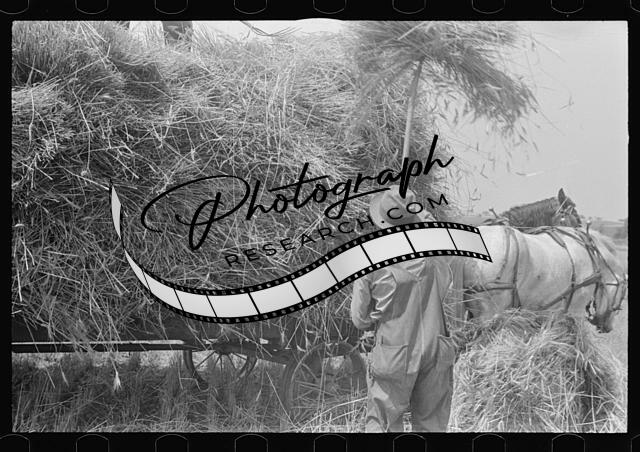 Loading bundles of wheat for hauling to thresher,central Ohio,OH,Summer 1938,9