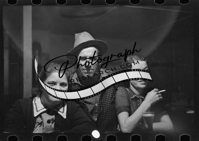 Lumberjack,two 'attendants' in saloon of Craigsville,Minnesota,MN,August 1937