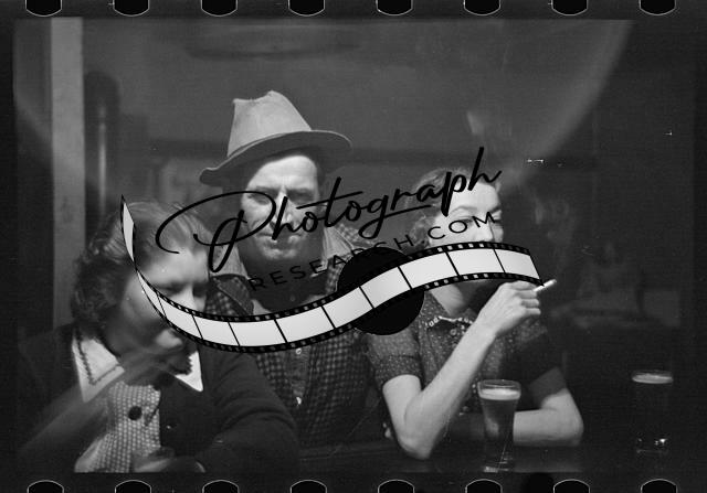 Lumberjack,two 'attendants' in saloon of Craigsville,Minnesota,MN,August 1937,1