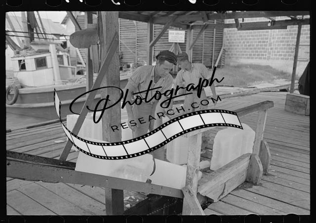Loading ice into shrimp boat,Morgan City,Louisiana,LA,Farm Security Admin,1