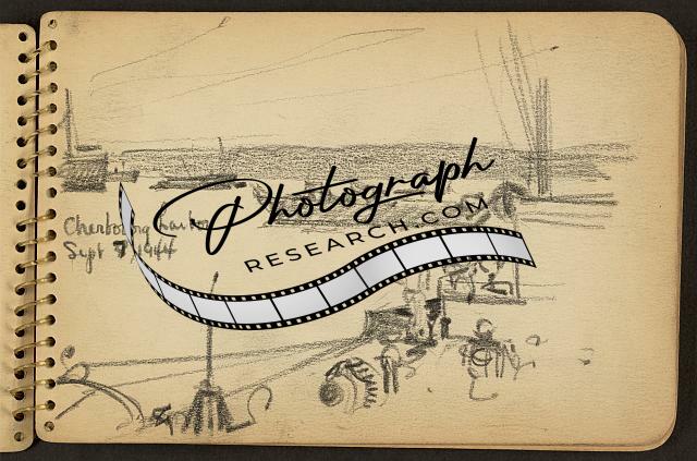 Cherbourg harbor,ships,soldiers,military personnel,Europe,Victor A Lundy,1944