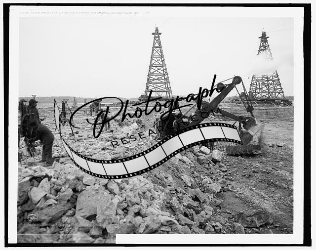 Steam shovel,pneumatic drill,Livingstone Channel,Detroit River,Michigan,MI,c1908