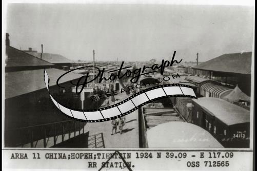 Bird's-eye view of railroad station,Tientsin,Hopeh,China,RR,1924,people,area 11