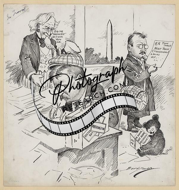 In transit,Theodore Roosevelt,Paperwork,Travel,Uncle Sam,Bear,Loeb,1905-1909