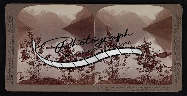 Cloud-wreathed Mt. Peaks surrounding lovely Lake Loen, Norway