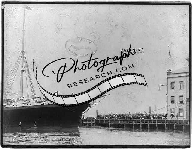 View of Bow,NEW YORK,ship,crowd on wharf,New York City,NYC,c1894
