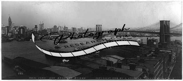 New York and Brooklyn Bridge,NY,c1908,ships,skyscrapers,East River