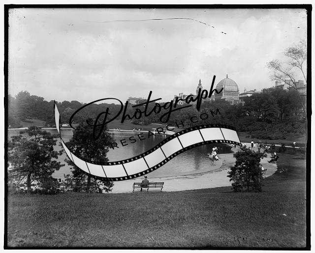 Lake,park,water bodies,buildings,benches,paths,Detroit Publishing Company,1910