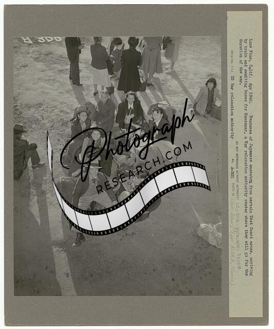Lone Pine, Calif. May 1942. Evacuees, of Japanese ancestry, awaiting a bus for M
