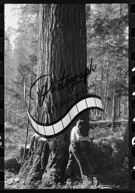 Title: A faller who is pouring oil on this saw while falling a tree, Cowlitz County, Washington