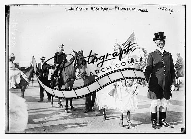 Long Branch Baby Parade - Priscilla Mitchell,horseback,US flag,children