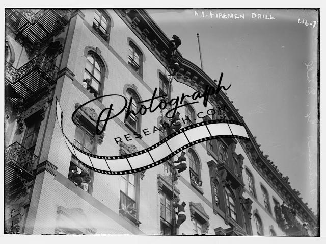 N.Y. Fireman drill,climbing up side of building,New York