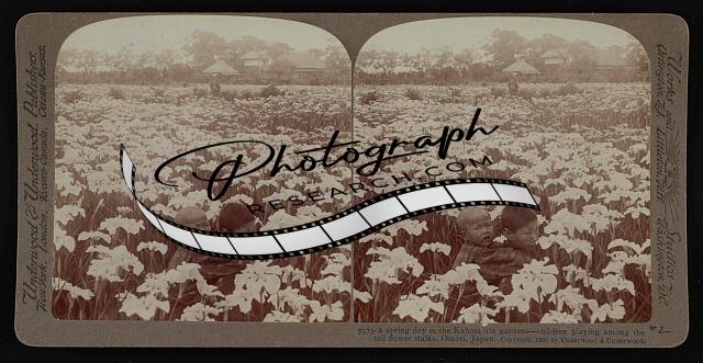 A spring day in the Kabota iris gardens--children playing among the tall flower stalks, Omori, Japan
