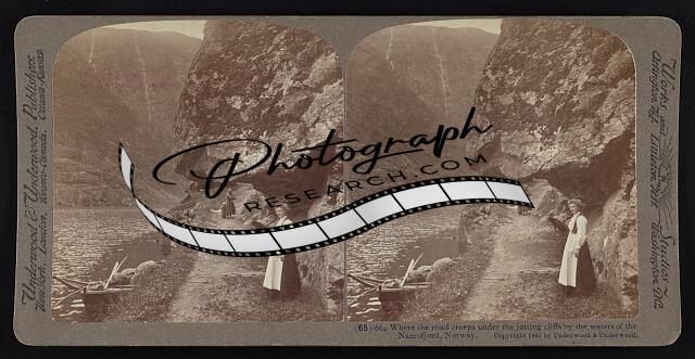 Where the road creeps under the jutting cliffs by the waters of Naerofjord, Norw