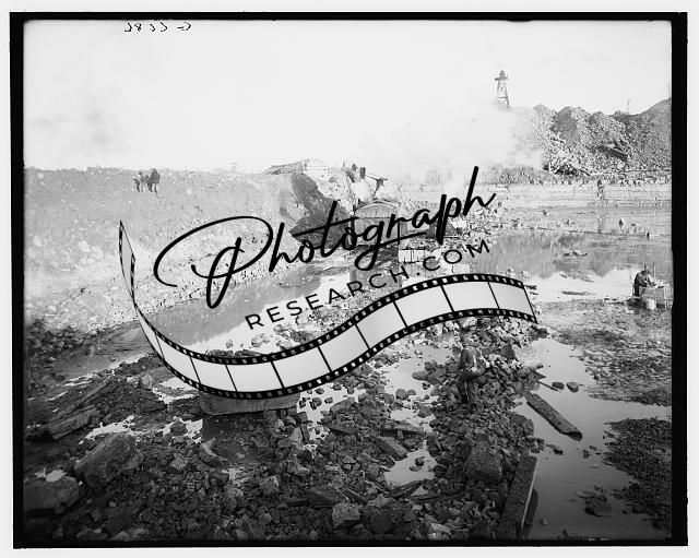 Steam shovel removing section,coffer dam,Livingstone Channel,Detroit,MI,1900