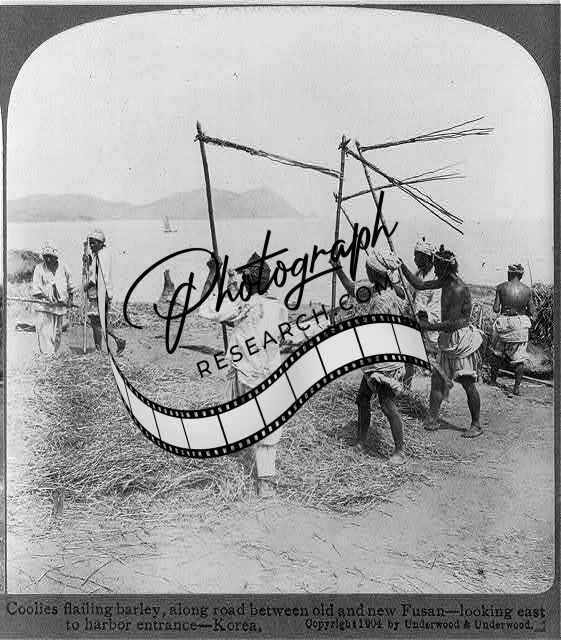 Coolies Flailing Barley,Fusan,Korea,Harbor Entrance,Road,c1904,Food Crops,2