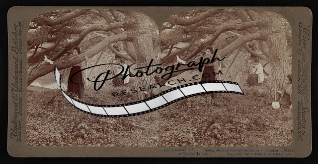 Graceful girlhood among the hoary pines beside the old imperial moat at Tokyo, Japan