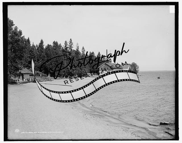 Beach,boat house,resorts,inns,Bluff Point,Lake,Hotel Champlain,New York,NY,1900