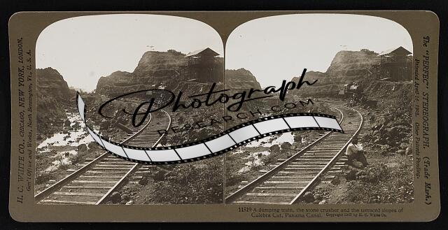 A dumping train, the stone crusher and the terraced slopes of Culebra Cut, Pnama