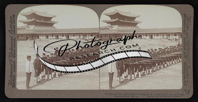 Korean soldiers (under arms)--looking N.E. to the gate of the old Royal Palace--