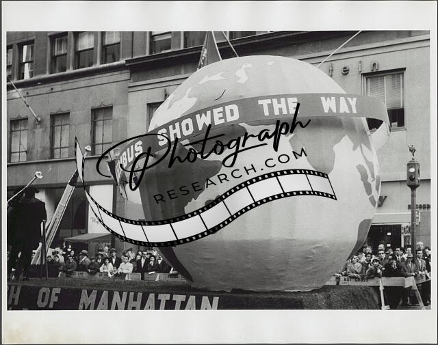 [[Crowd looking towards a parade float, possibly for a Columbus Day parade]]