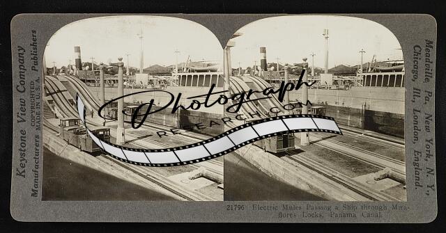 Electric mules passing a ship through Miraflores Locks, Panama Canal