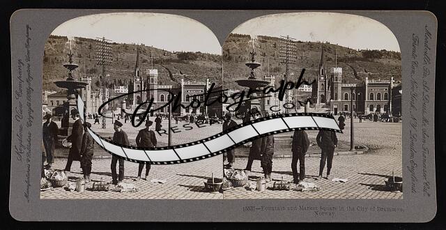 Fountain and market square in the city of Drammen, Norway