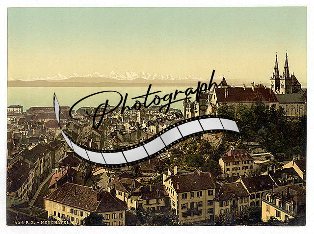 The town,showing Alps,Neuchatel,the castle,Switzerland