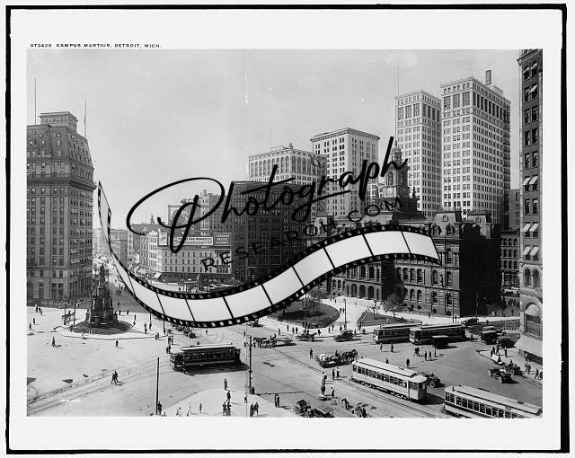 Campus Martius,street railroads,plazas,buildings,roads,Detroit,Michigan,MI,c1910