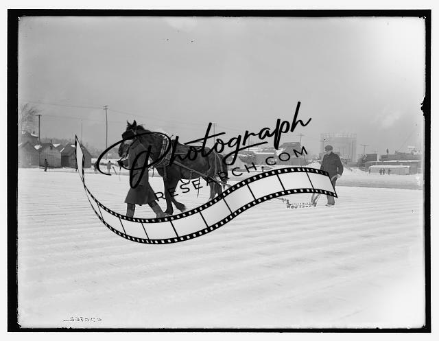 Ice harvesting,plowing,industry,animal,equipment,Detroit Publishing Company,1900