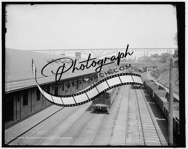 Poughkeepsie Station,railroad station,cars,buildings,New York,NY,W Jackson,1880