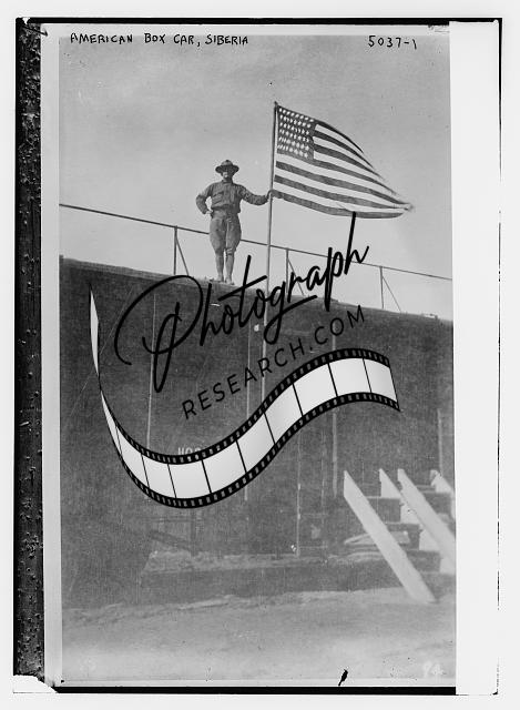 American Box Car,Flags,trains,transportation,Siberia,Russia,Bain News Service