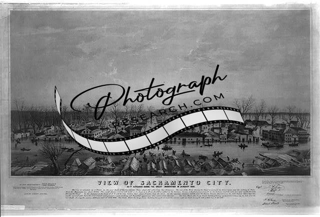 View of Sacramento City,California,CA,during the flood of January 1850,Cityscape